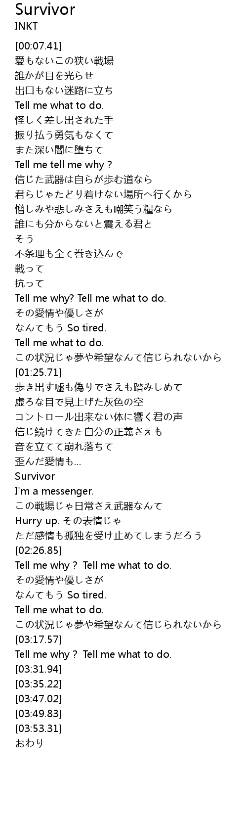 | [02:52.70] | Tell me why? Tell me what to do. |