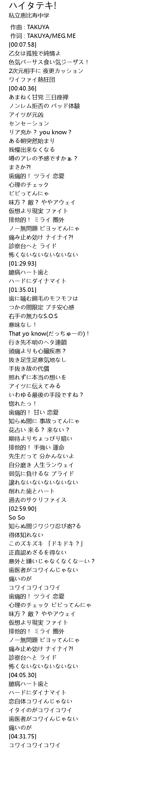 | [04:18.73] | 歯医者がコワイんじゃない |