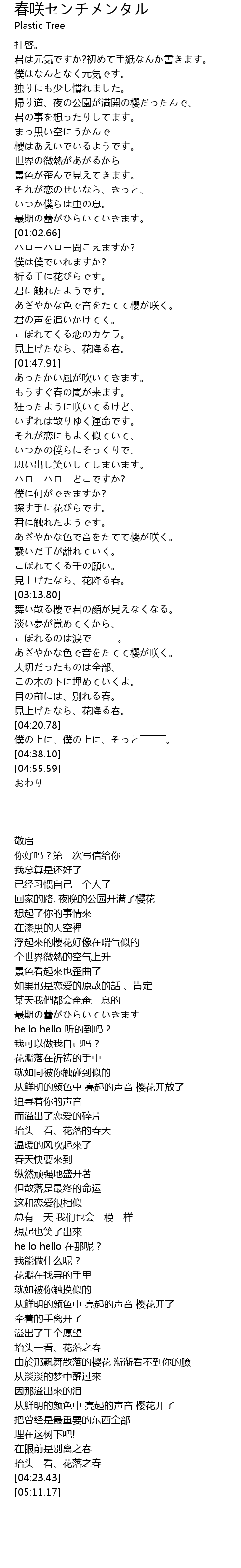 | [03:32.51] | 舞い散る櫻で君の顔が見えなくなる。 |