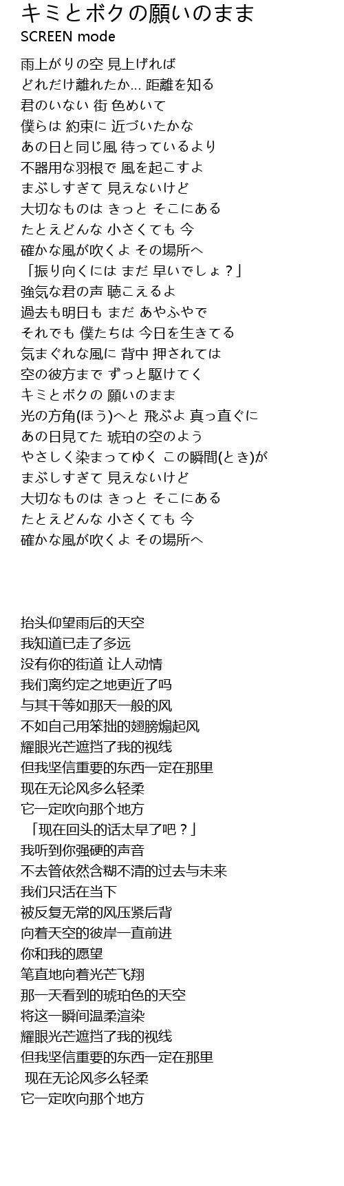| Song | キミとボクの願いのまま |