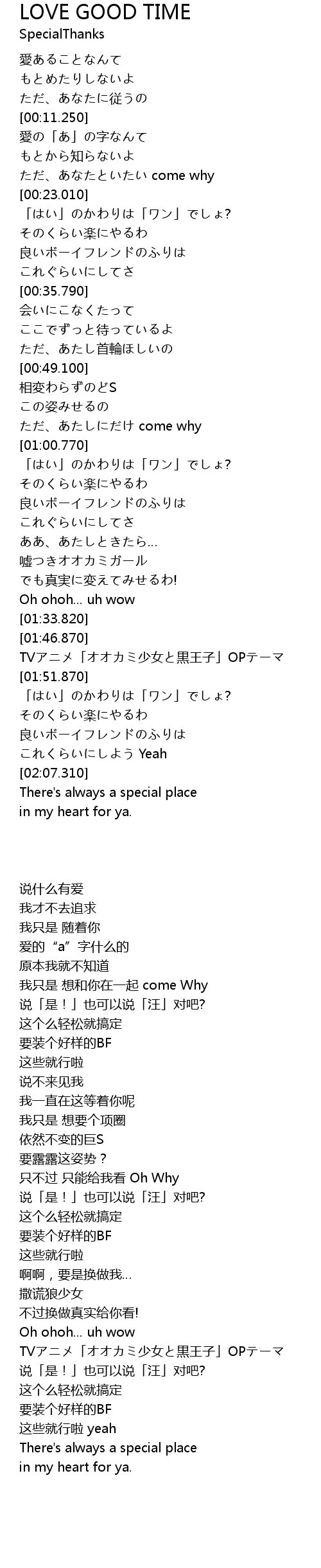 | [01:48.870] | TVアニメ「オオカミ少女と黒王子」OPテーマ |