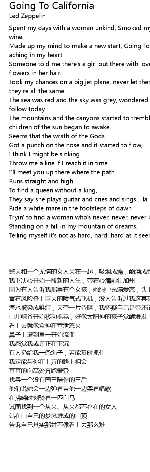 Made up my mind to make a new start, Going To California with an aching in my heart. |