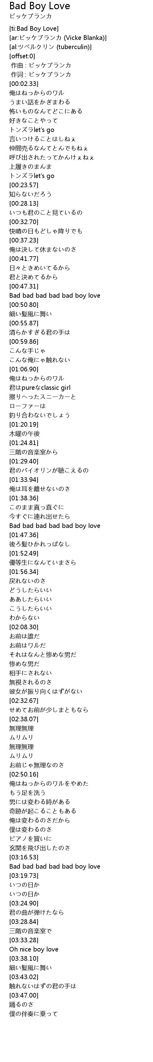 | [00:48.19] | Bad bad bad bad bad boy love |