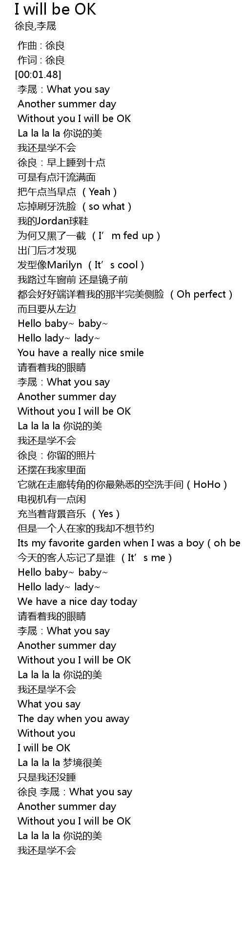 | [01:20.47] | Without you I will be OK |