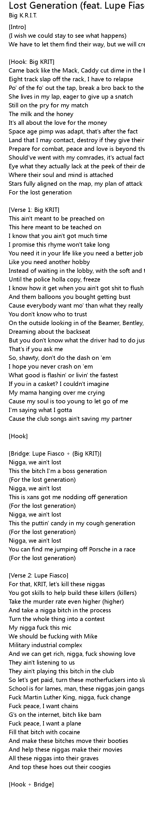 [Bridge: Lupe Fiasco + (Big KRIT)] |