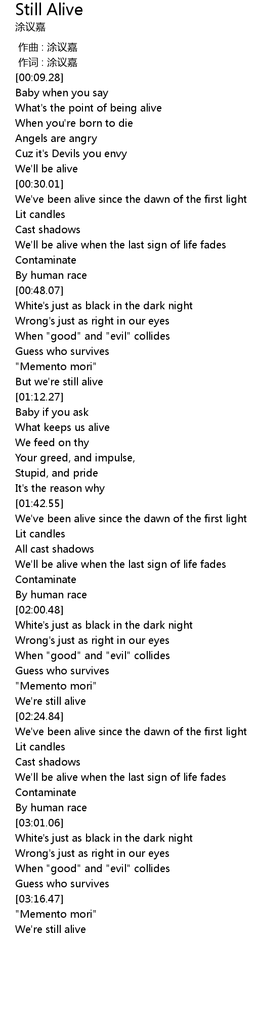 | [03:21.70] | We' re still alive |