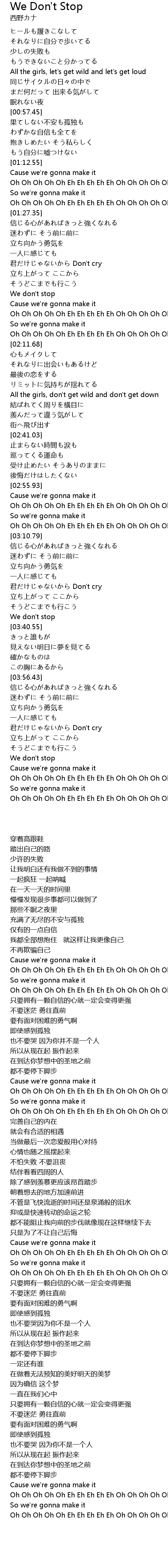 | [01:55.87] | We don' t stop |