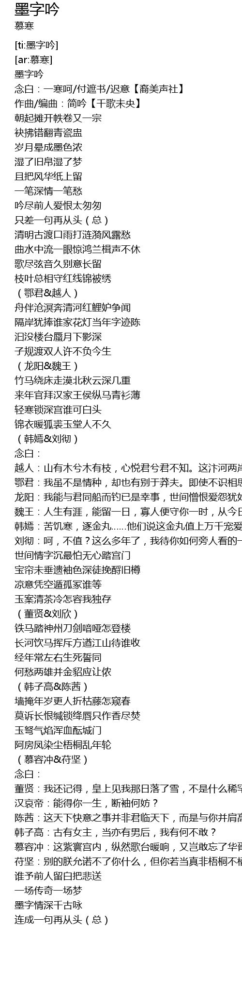 | [00:05.873] | 念白:一寒呵/付遮书/迟意【裔美声社】 |