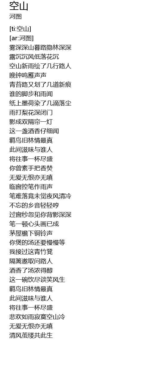 | [00:46.67] | 空山新雨绘了几行路人 |