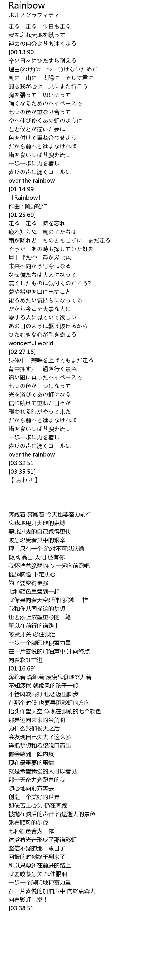 | [01:16.69] | 「Rainbow」 |