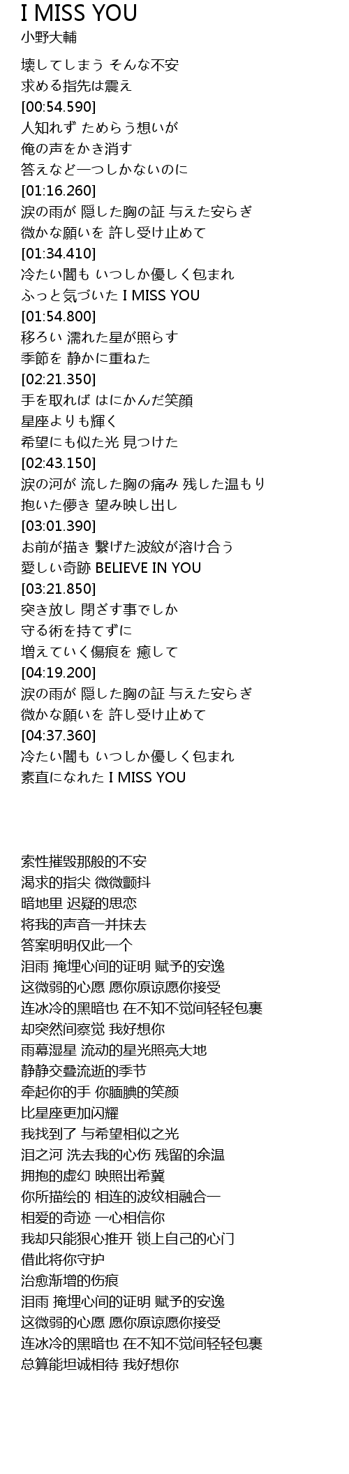 | [04:48.040] | 素直になれた I MISS YOU |