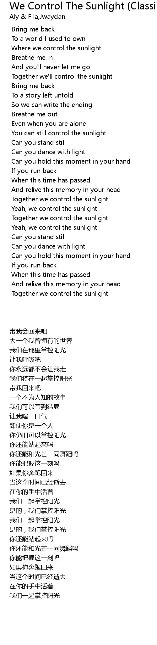 Together we'll control the sunlight |