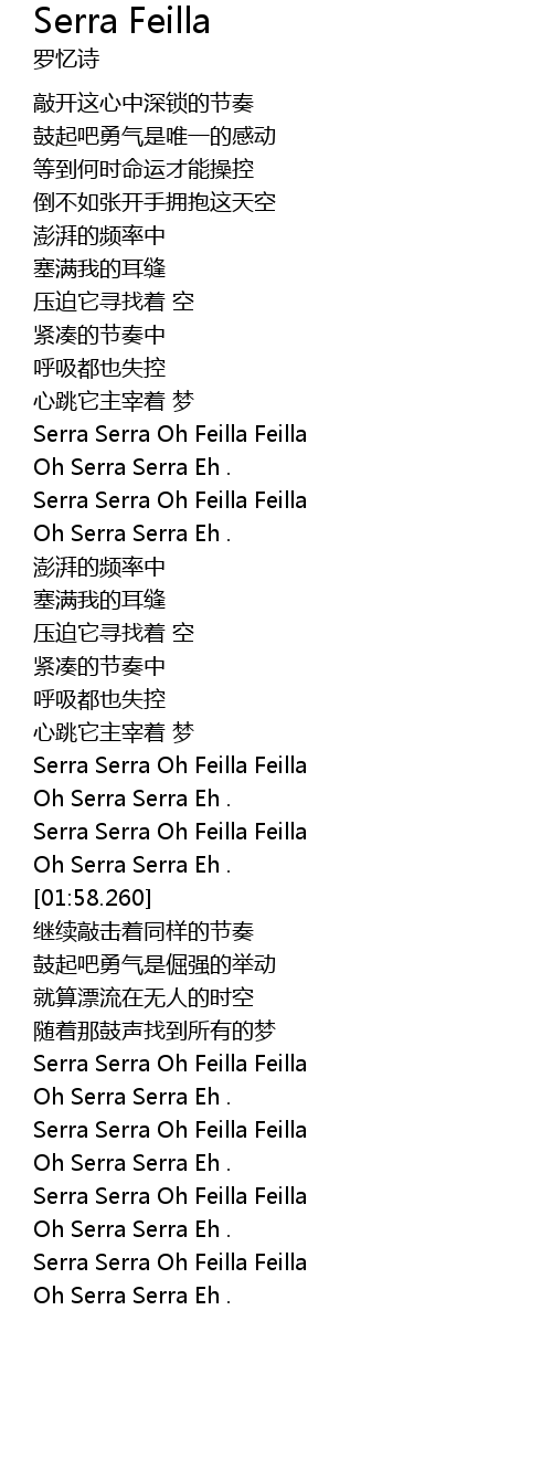| [01:42.660] | Serra Serra Oh Feilla Feilla |