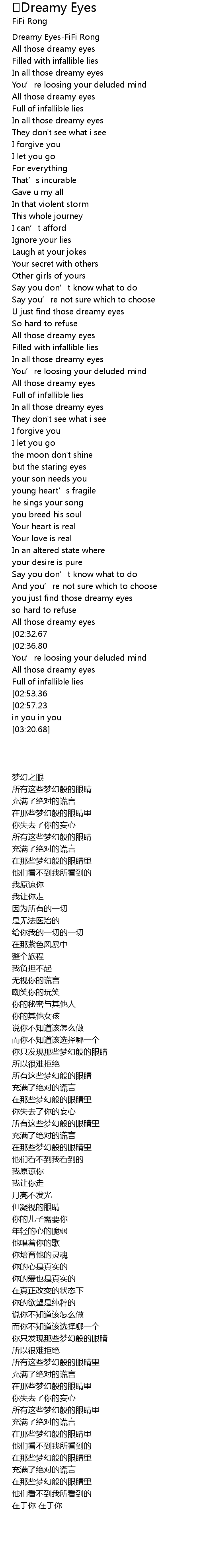 | [00:00.00] | Dreamy EyesFiFi Rong |
