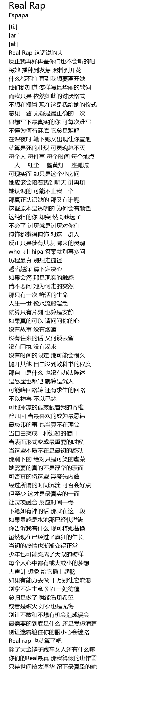 | [00:17.01] | Real Rap zhe hua shuo de da |