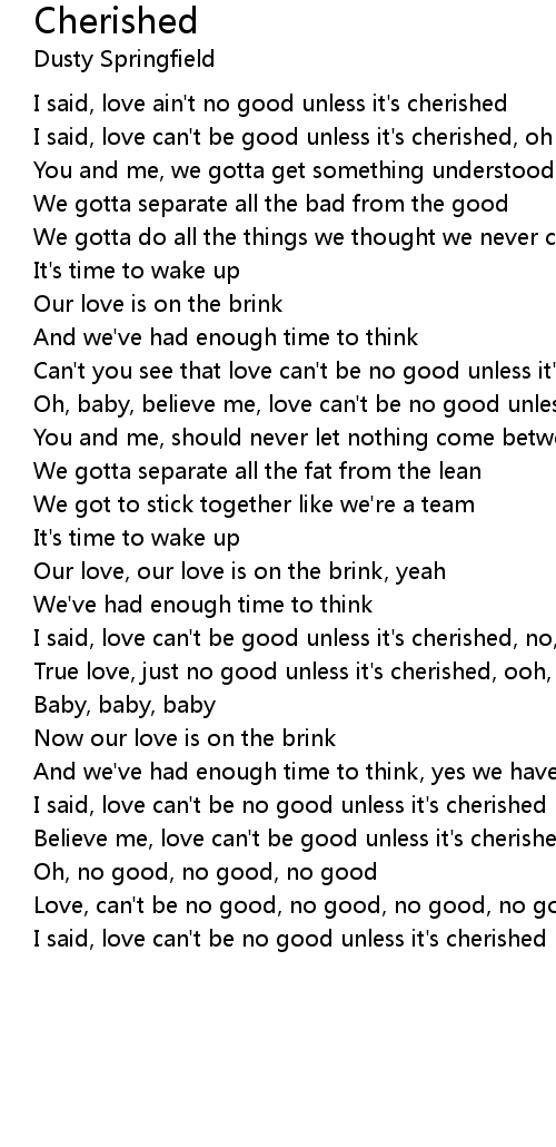 I said, love can't be good unless it's cherished, oh no |