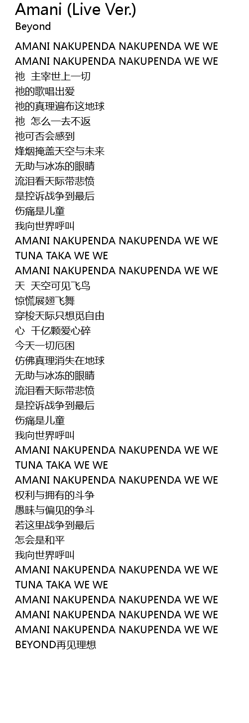 | [01:01] | AMANI NAKUPENDA NAKUPENDA WE WE |