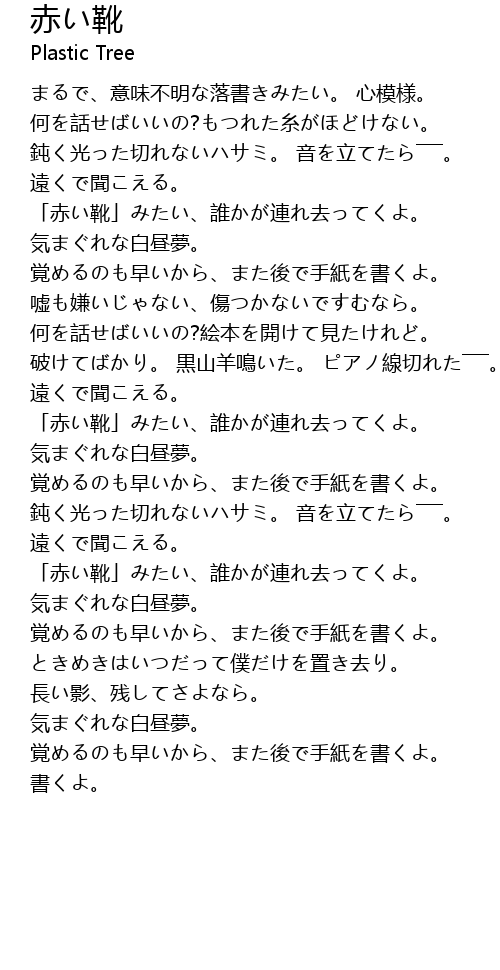 | Song | 赤い靴 |