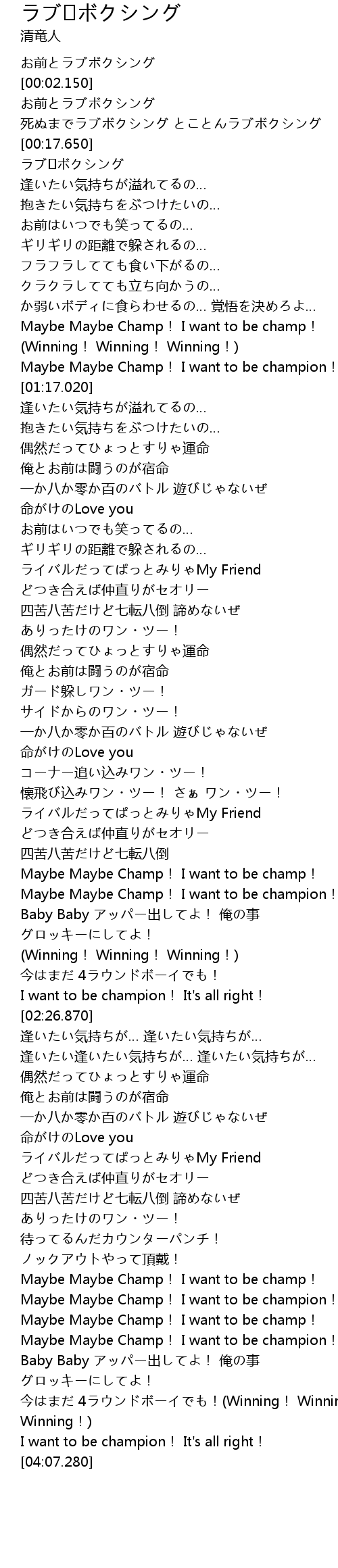 | [00:06.430] | お前とラブボクシング |