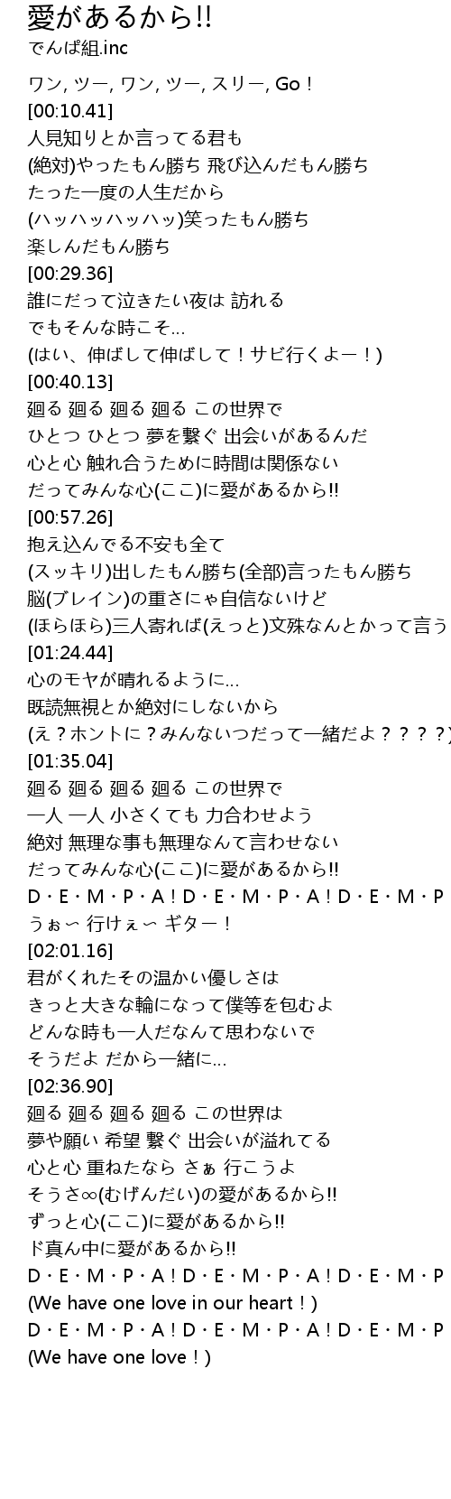 | [02:58.29] | D・E・M・P・A!D・E・M・P・A!D・E・M・P・A! |