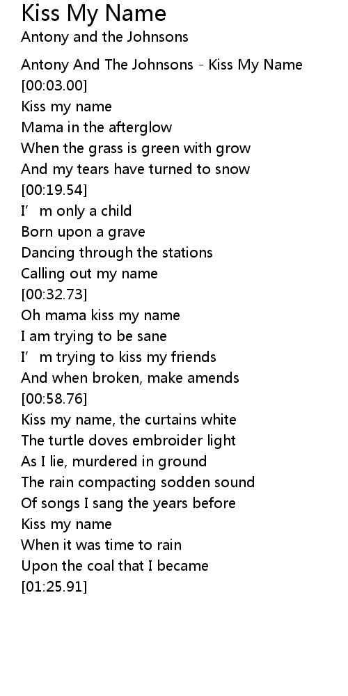 | [00:02.00] | Antony And The Johnsons Kiss My Name |