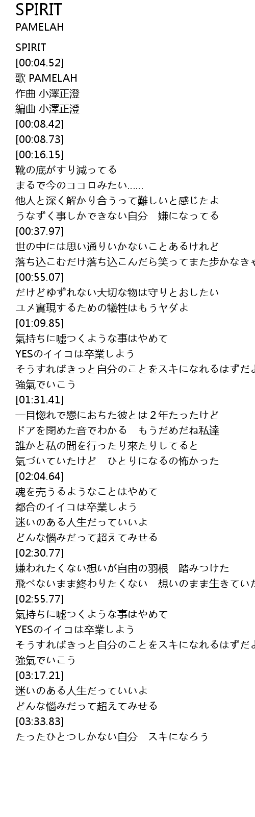 | [03:35.06] | たったひとつしかない自分 スキになろう |