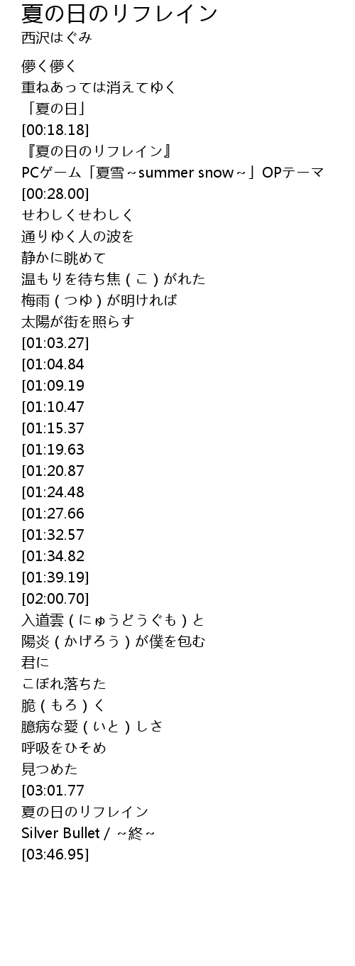 | [00:24.04] | PCゲーム「夏雪~summer snow~」OPテーマ |