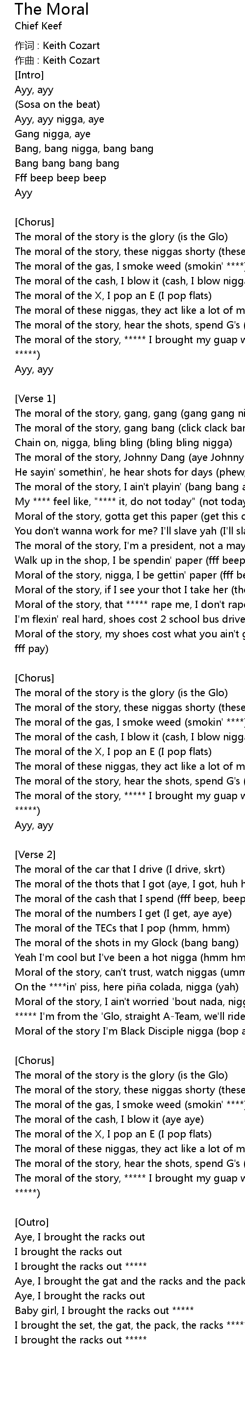 | The moral of the story, gang, gang (gang gang nigga) | |