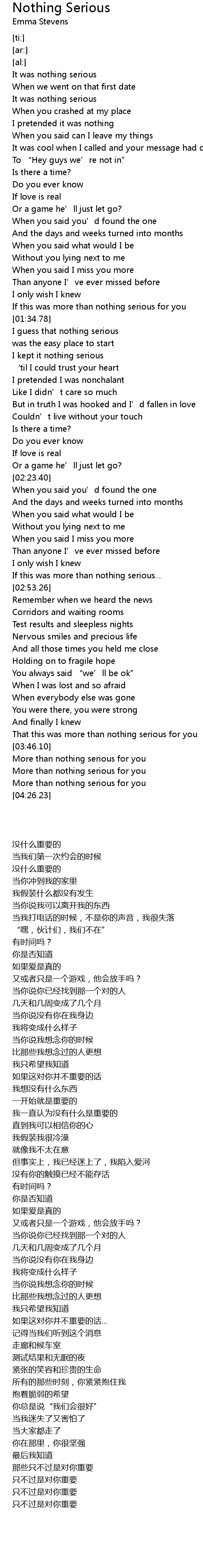 | [03:53.43] | More than nothing serious for you |