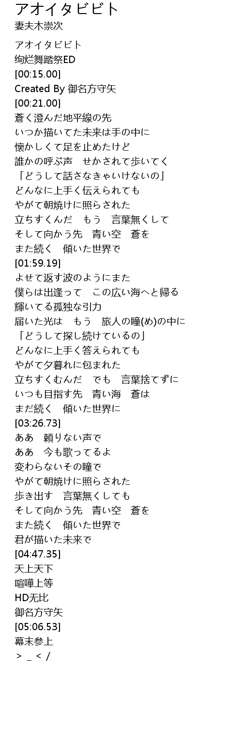 | [00:37.02] | 蒼く澄んだ地平線の先 |