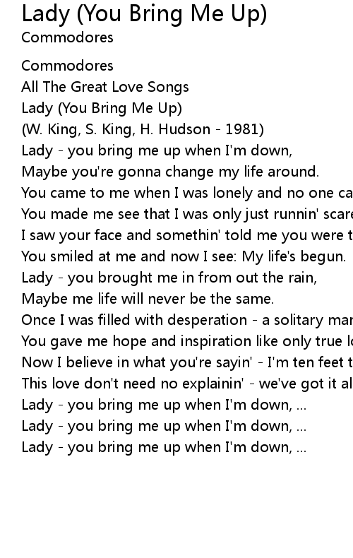 Lady - you bring me up when I'm down, ... |