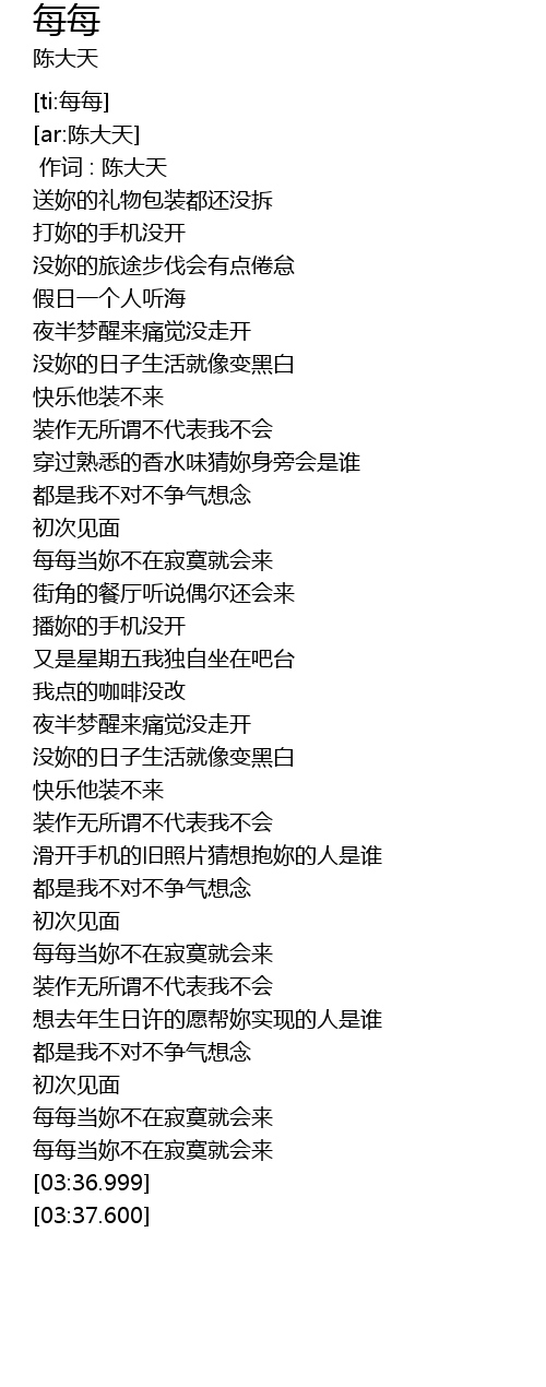| [00:00.00] | 作词 : 陈大天 |