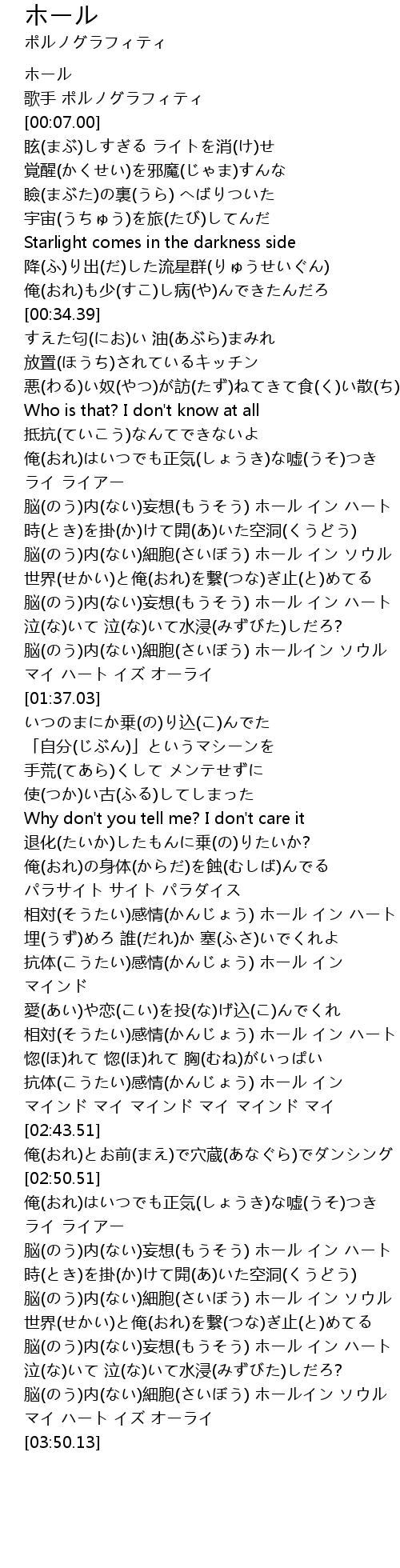 | [03:35.67] | 脳(のう)内(ない)妄想(もうそう) ホール イン ハート |
