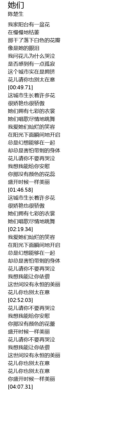 | [01:31.24] | 花儿请你不要再哭泣 |