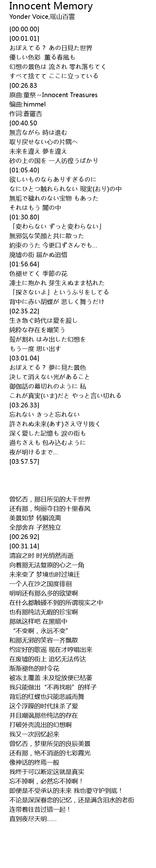 | [00:26.92] | yuan qu: tong ji Innocent Treasures |