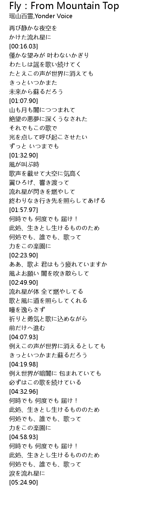 | [01:41.95] | 翼ひろげ、響き渡って |