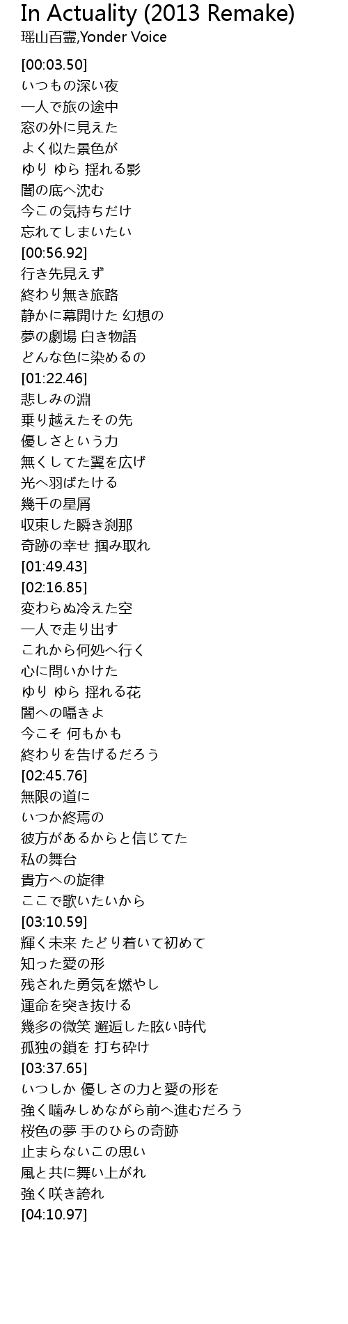 | [01:38.95] | 収束した瞬き刹那 |