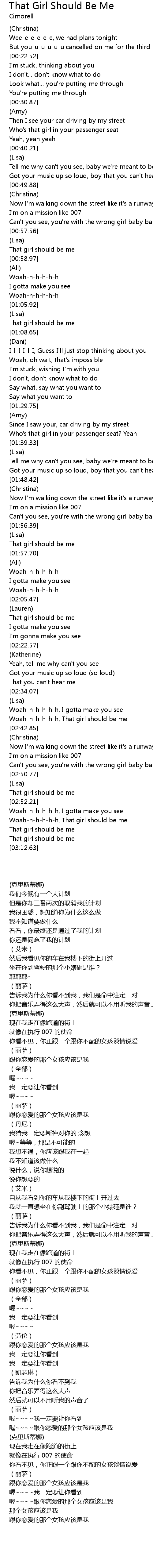 | [02:56.92] | Woah-h-h-h-h-h, That girl should be me |