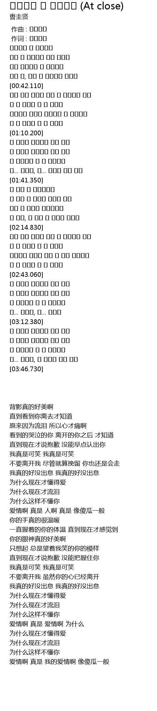 우는 널, 가는 널 보고서야 알았어 |