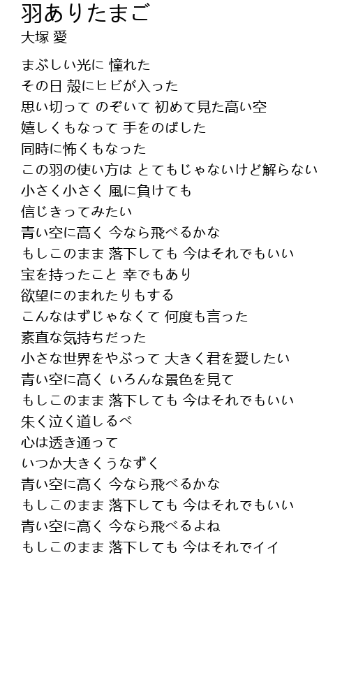 | Song | 羽ありたまご |
