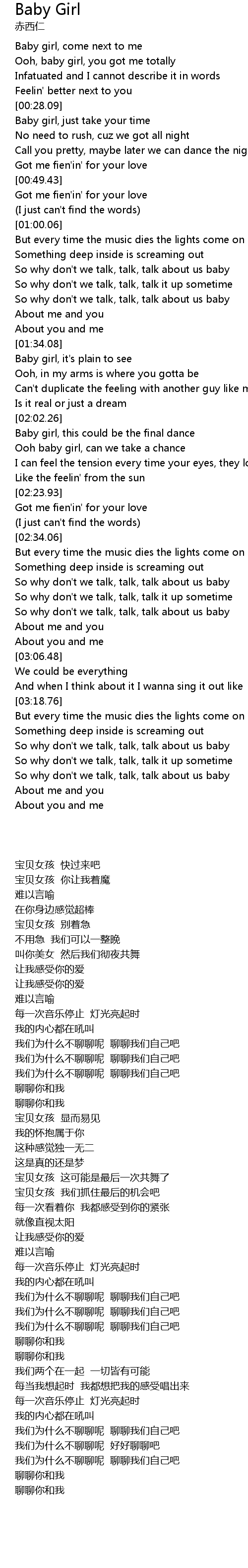 | [02:10.17] | Ooh baby girl, can we take a chance |