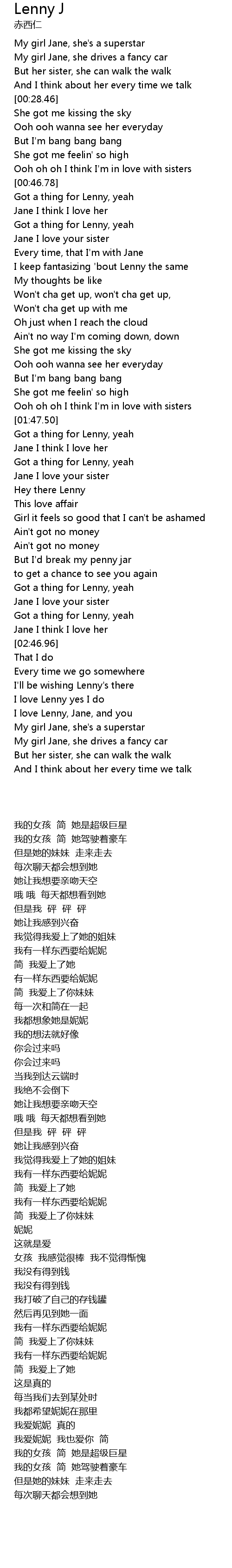 | [00:49.98] | Got a thing for Lenny, yeah |