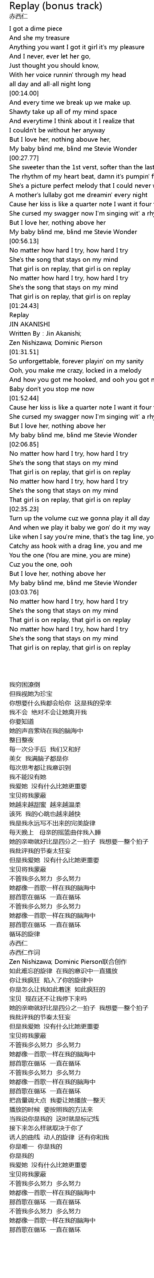 | [03:00.71] | My baby blind me, blind me Stevie Wonder |