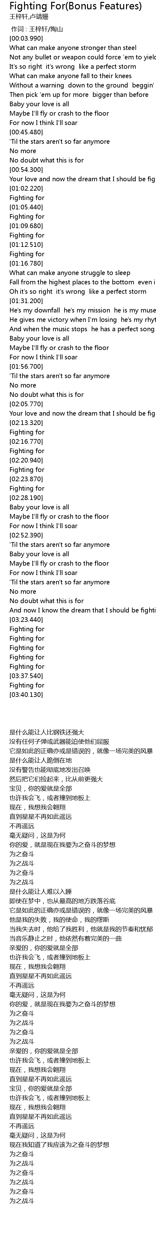 | [03:24.550] | Fighting for |