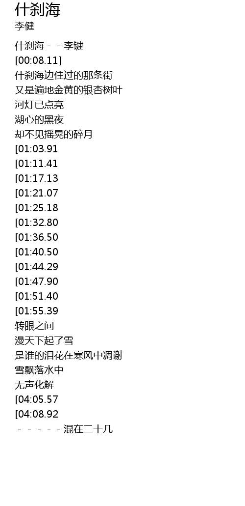 | [00:02.87] | 什刹海--李键 |