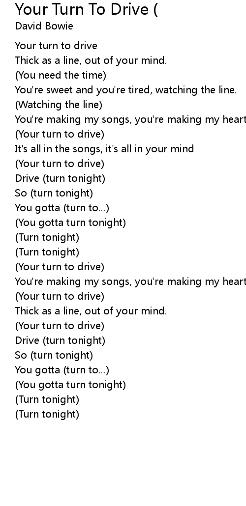 (Your turn to drive) |