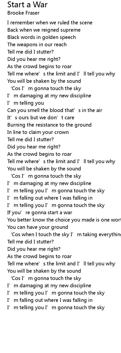 | ' Cos when I touch the sky I' m taking everything you' ve got | |