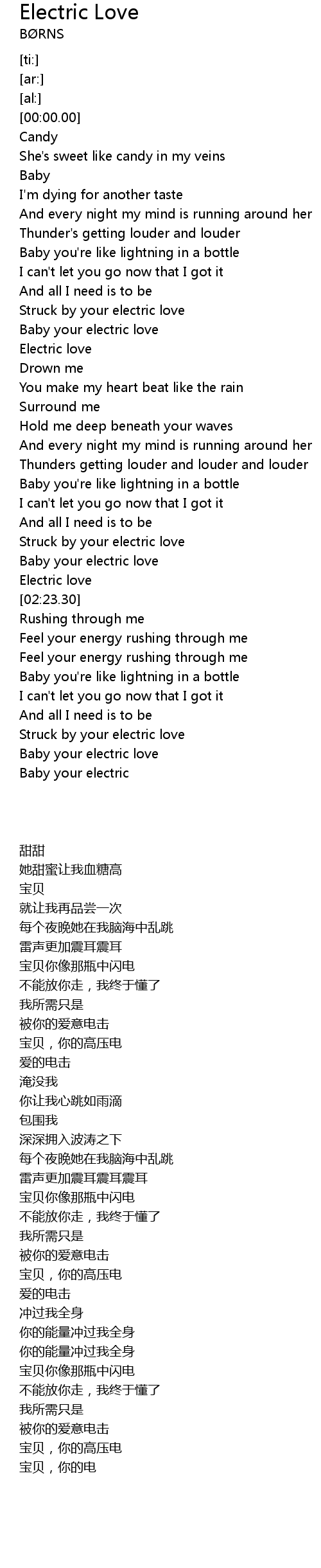 | [01:52.42] | Baby you're like lightning in a bottle |