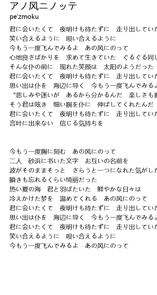 | 思い出は仆を 海辺に导く 今もう一度飞んでみるよ あの风にのって | |