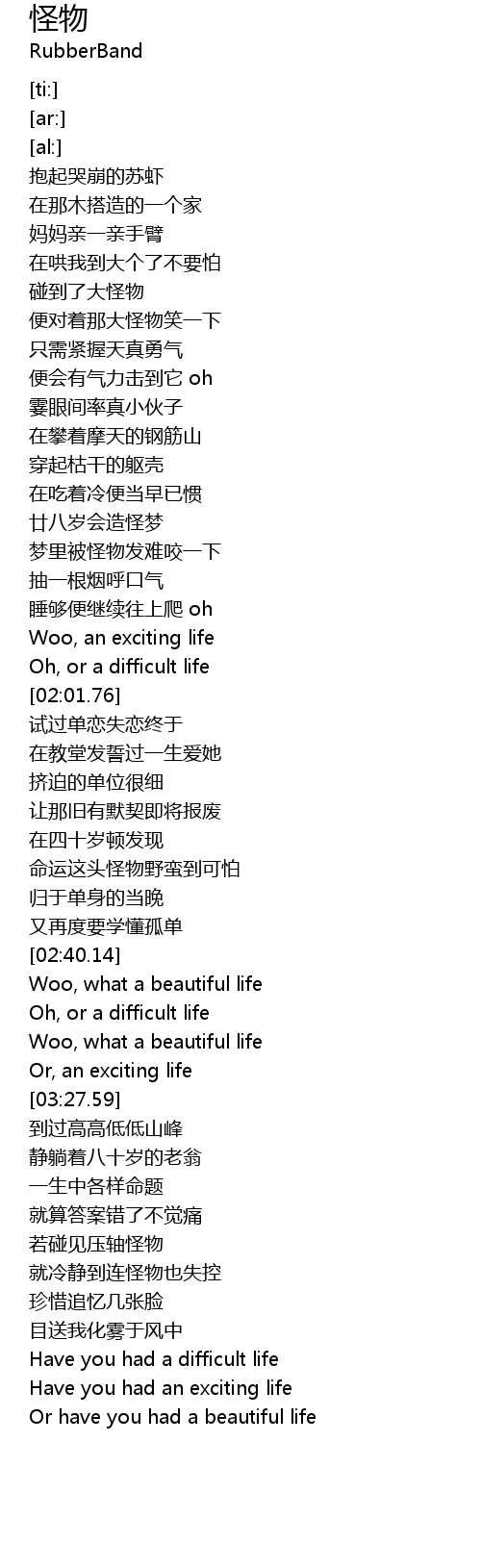 | [02:47.11] | Woo, what a beautiful life |